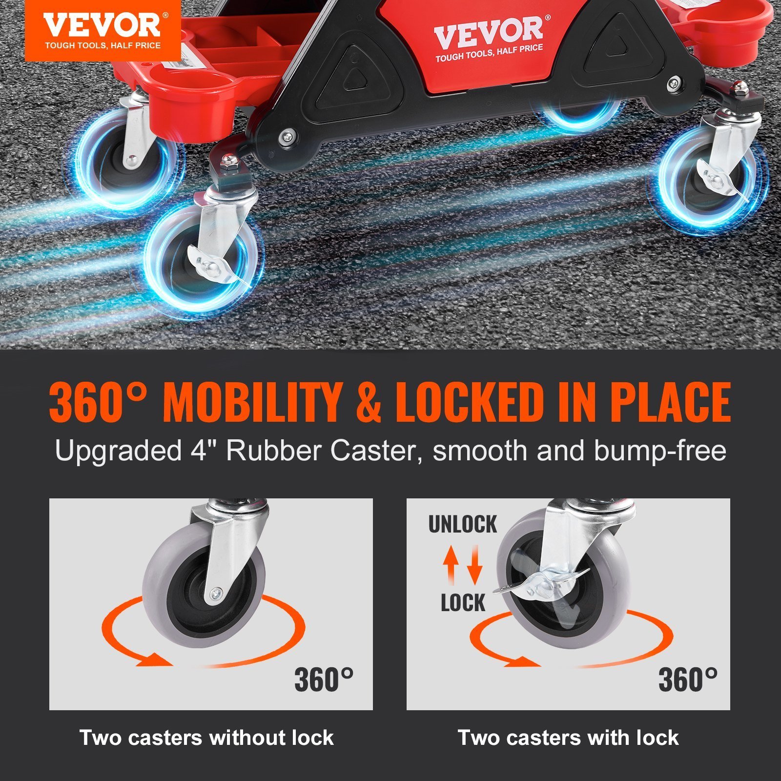 1.VEVOR Mechanics Stool, 300 LBS Capacity Rolling Mechanic Seat with 4" Wheels, with Three Slide Out Tool Trays and Drawer, Heavy Duty Roller Creeper Seat for Home Garage DIY Automotive